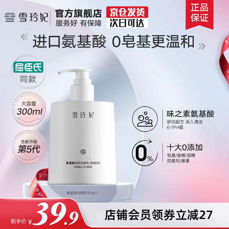 ¥32.9 雪玲妃百合洗面奶深层清洁毛孔保湿清爽洗净不紧绷洁面男女士 氨基酸洁面乳300g-新配方 59.9