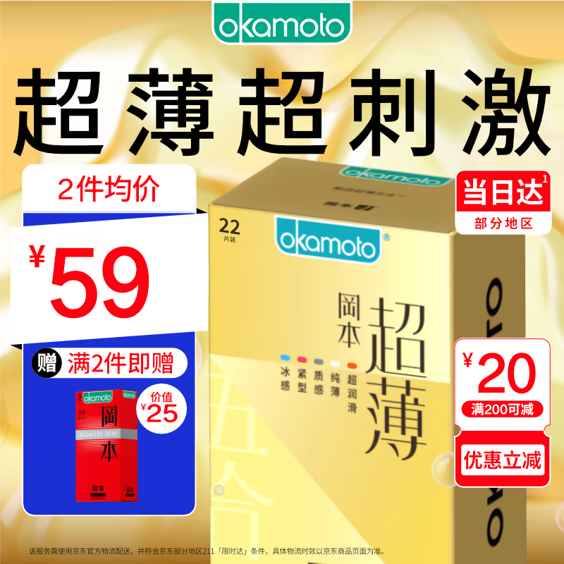 ¥69 冈本 避孕套 安全套 超薄尽享五合一22片装 男女用 套套 成人情趣计生用品 okamoto 109