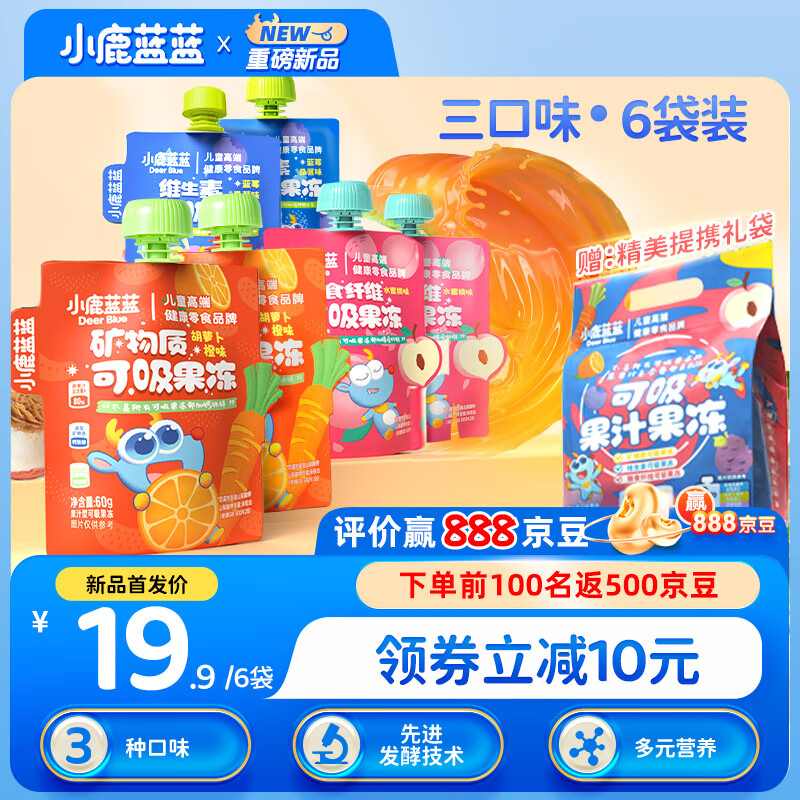 ¥19.9 小鹿蓝蓝 宝宝零食可吸果冻组合多口味含6袋 儿童果汁蓝莓水蜜桃果冻360g 29.9