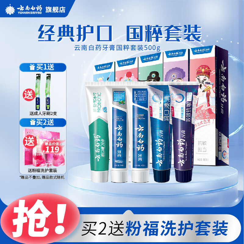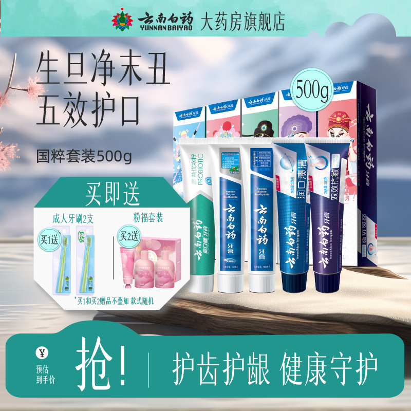 ¥169 云南白药牙膏国粹套装5支共500g家庭装留兰薄荷益生菌减轻牙龈问题 cy 国粹套装500g 269
