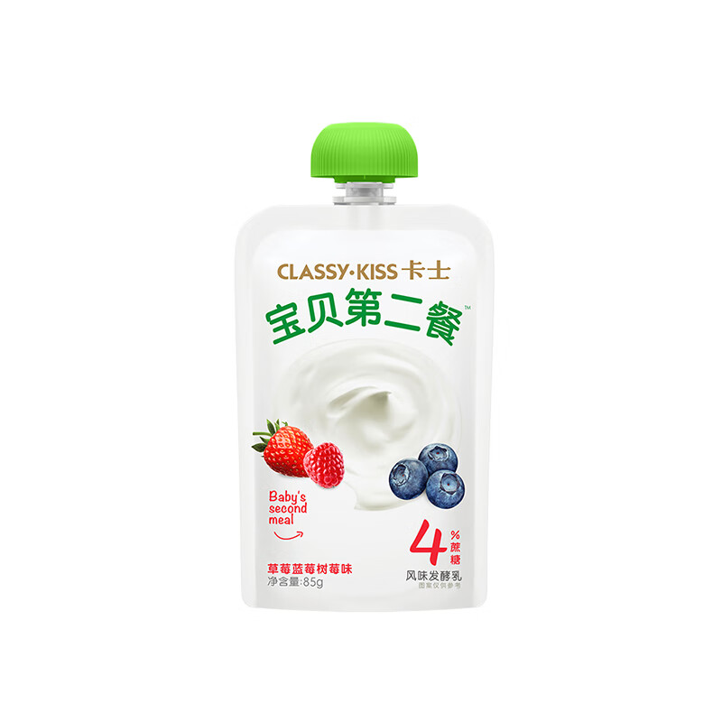 ¥69.9 卡士CLASSY·KISS 宝贝第二餐酸奶(单袋85g)风味发酵乳 宝宝酸奶 草莓蓝莓树莓味4%蔗糖*11袋 108.9