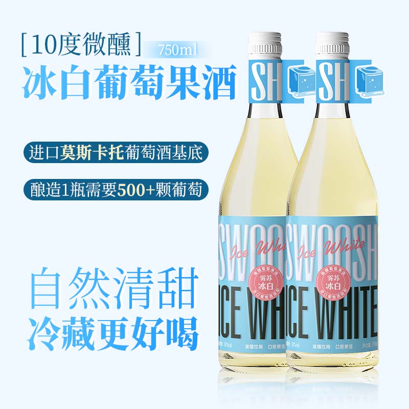 ¥59 雾苏【4项大奖 冷藏好喝】葡萄酒甜红甜酒莫斯卡托果味晚安小酒女士酒 冰白葡萄酒 750ml*2瓶 109