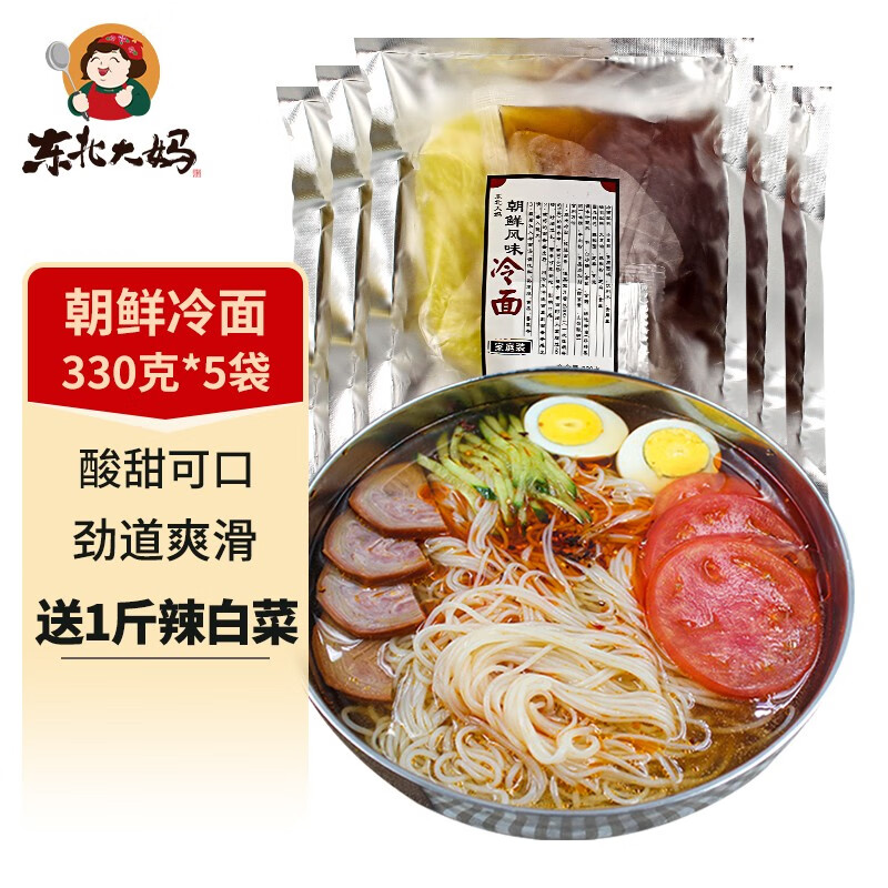 ¥16.9 东北大妈冷面家庭装朝鲜大冷面真空包装韩式风味朝鲜延吉冷面凉面速食食品 家庭装330g冷面5袋+500g辣白菜 21.9