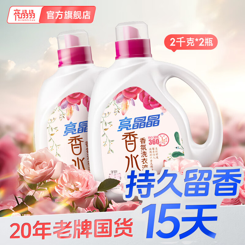 ¥54.99 亮晶晶香水洗衣液持久留香15天COCO提香防串色漂白柔顺除螨防静电家庭装 共8斤-2大瓶(高级香水味) 59.99