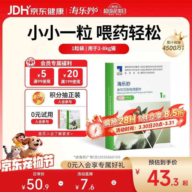 海乐妙猫咪体内驱虫药2-8kg,叠加优惠后仅需16.39元