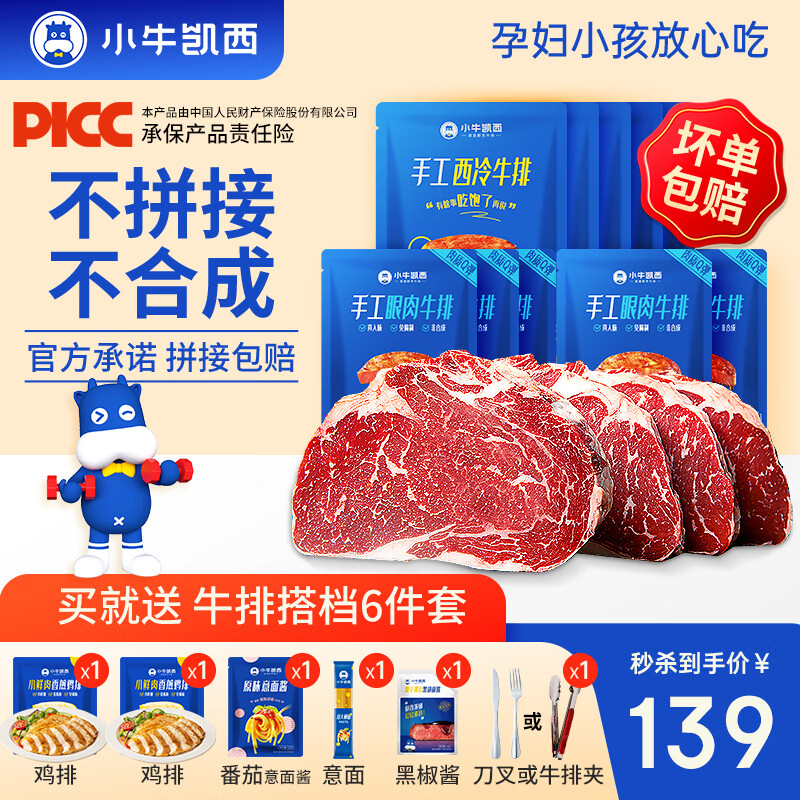 ¥161 小牛凯西整切牛排 西冷眼肉厚切牛肉意面鸡排新鲜牛扒生鲜 5西冷+5眼肉+【6件套】 200