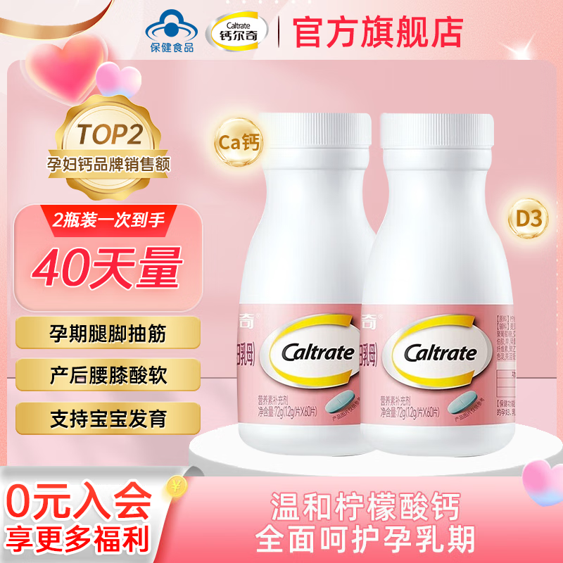 ¥118 【官方正品】钙尔奇孕妇钙片柠檬酸钙片成人孕早中晚期含钙高 孕哺乳期钙片乳母型补钙维生素D3孕妇专用 【备孕哺40天量】温和补钙60片2瓶装 瓶装 249