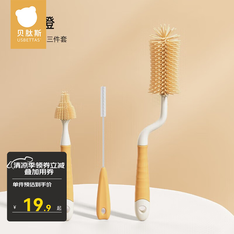 ¥14.9 贝肽斯奶瓶刷硅胶清洗刷新生婴儿专用清洗奶瓶刷子吸管刷子便携套装 【波尔橙】防滑手柄硅胶三件套 旋转柄硅胶奶瓶刷套装 19.9