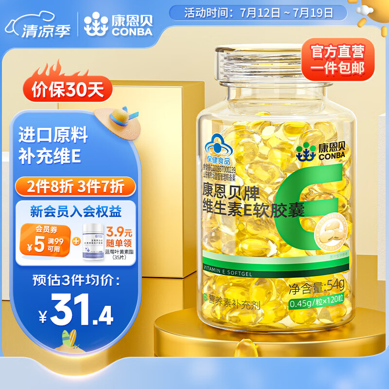 ¥24.9 康恩贝 维生素E软胶囊 维生素e油ve维e 维E软胶囊 VE油 维E油VE保健品 VE 120粒 44.9