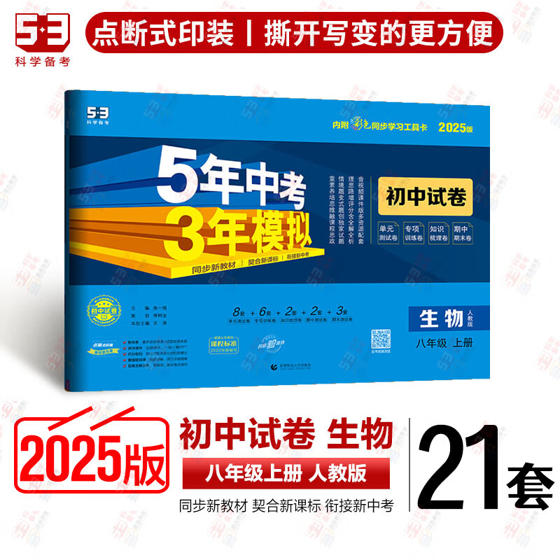¥22.3 现货5年中考3年模拟八年级上册全套人教版2025五年中考三年模拟初二八年级上册全套练习册试卷五三53天天练 上册测试卷-生物人教21套(2025版) 24.3
