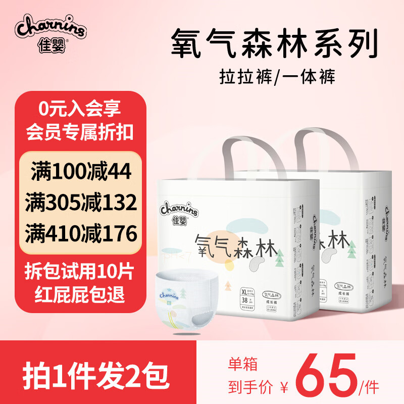 ¥60 佳婴氧气森林拉拉裤超薄婴儿尿不湿男女宝宝透气弱酸亲肤成长裤 XXL码68片全包臀拉拉裤 109
