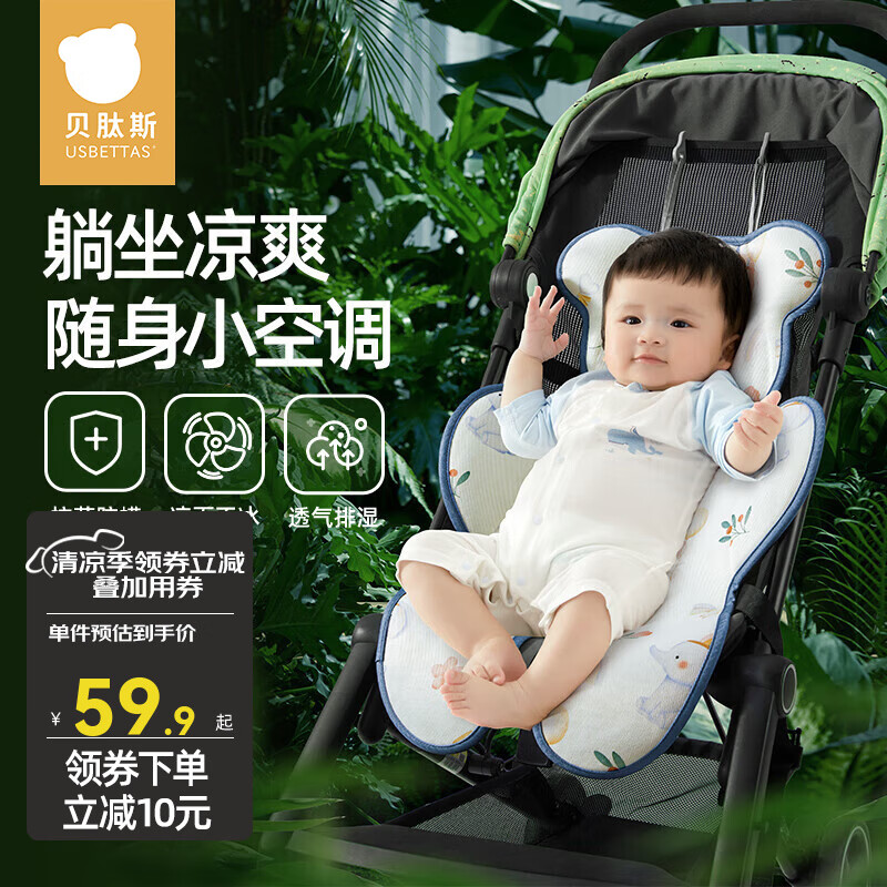 ¥39.9 贝肽斯婴儿车凉席儿童夏季透气冰丝凉席宝宝手推车安全座椅通用 森林奇遇(72*45cm) 69.9