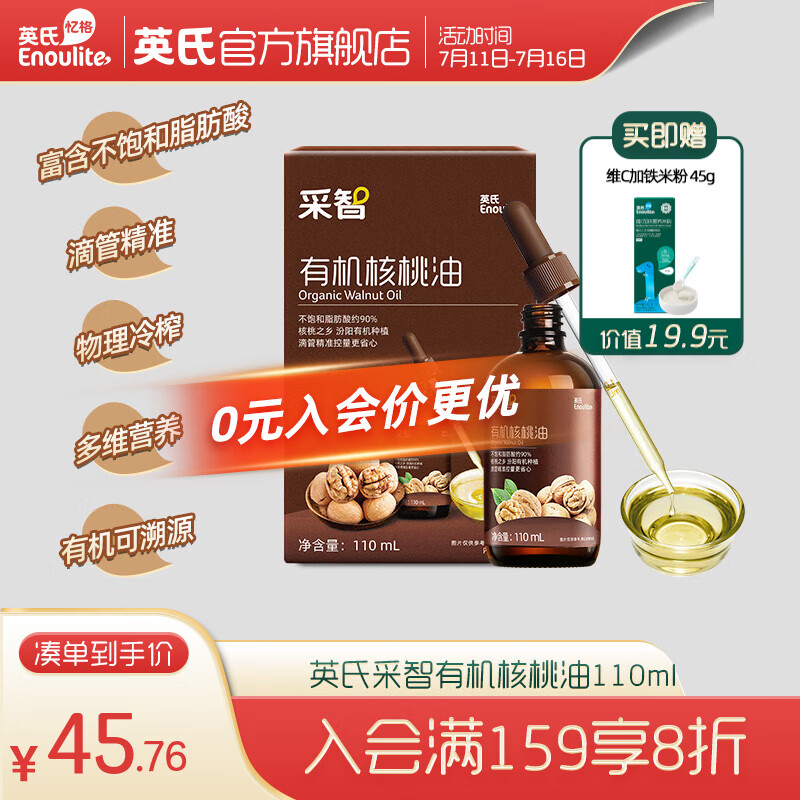 ¥48.8 英氏采智有机核桃油牛油果油亚麻籽油儿童热炒凉拌食用油组合油 【第一口佐餐油】核桃油110ml 55.8