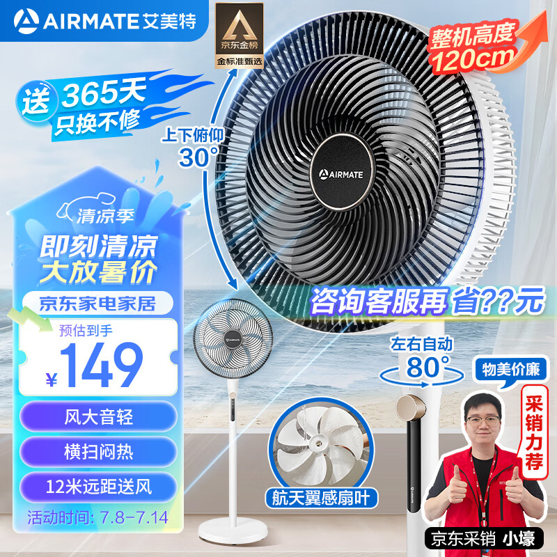 ¥129 艾美特(AIRMATE)七叶大风量落地扇家用轻音节能电风扇台立式左右摇头空气循环风扇底盘加固 FS35-X76 159