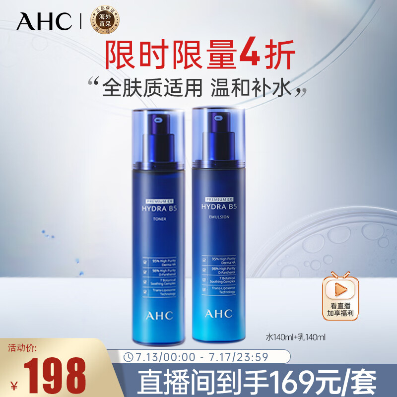 ¥193 AHC定制升级版B5玻尿酸水乳套装280ml 护肤品套装 生日送女友 198