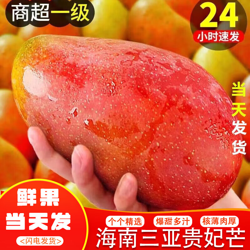 ¥47.3 鲸咚亿农海南三亚贵妃芒薄核纸核芒果红金龙树上熟当季甜心芒孕妇新鲜水果 9.5-10斤带箱实惠中果 49.3