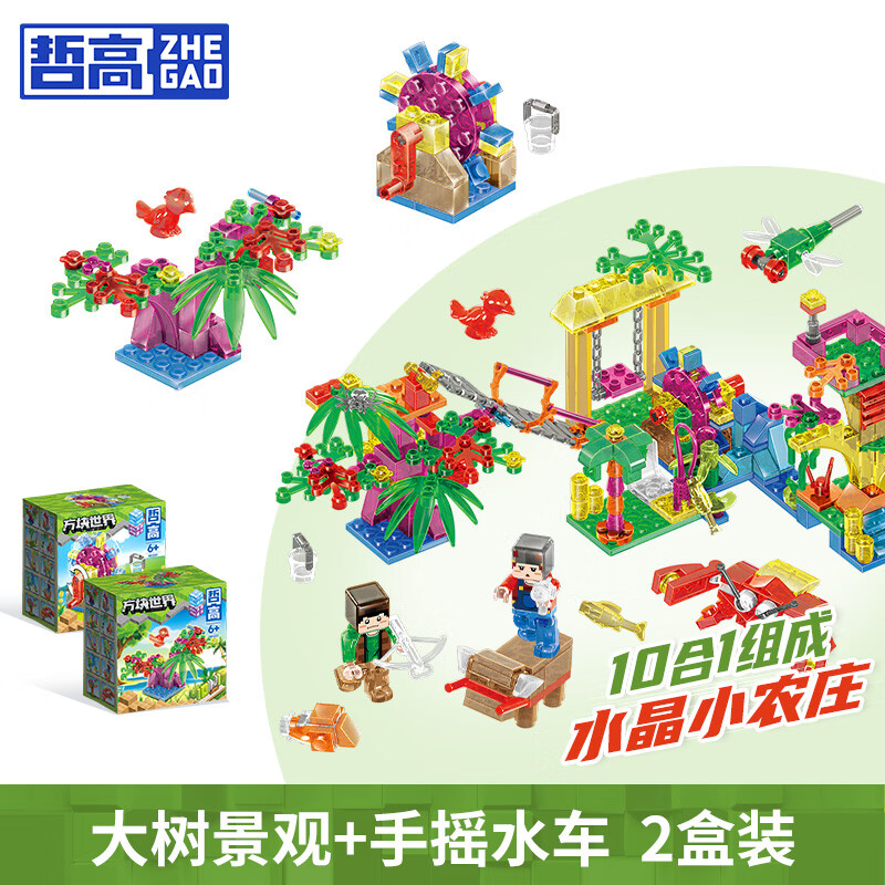 ¥9 哲高方块世界水晶小农庄积木拼装玩具男孩儿童生日节日礼物 大树景观+手摇水车(2盒) 20