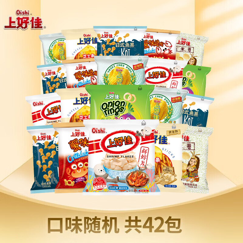 ¥19.9 上好佳 田园薯片膨化休闲食品零食组合 办公室零食组合口味随机 42包组合 29.9