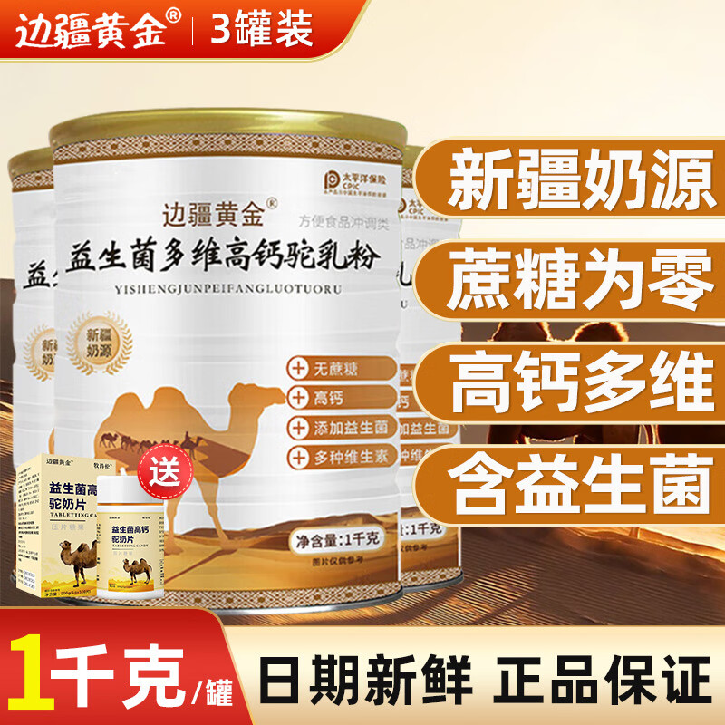 ¥209 边疆黄金1000g无蔗糖添加骆驼奶粉益生菌高钙儿童成人奶粉中老年蛋白粉 家庭套餐【3罐装+奶片1盒】 259