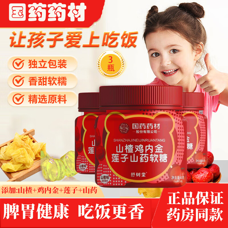 ¥19.9 国药药材山楂鸡内金莲子山药软糖可搭呵护儿童成人老人脾胃虚弱脾胃化积山楂鸡内金软糖 【山楂鸡内金莲子山药软糖】4瓶 69.9