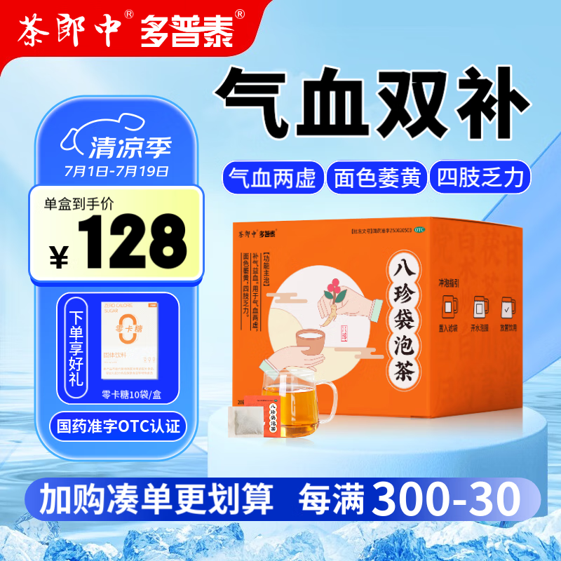 ¥128 茶郎中八珍袋泡茶20袋/盒 补气补血养生茶 气血两虚 面色萎黄 四肢乏力 1盒装 158