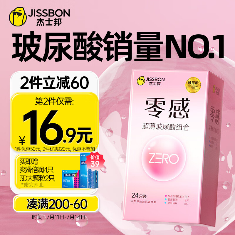 ¥56.9 杰士邦 避孕套 安全套 玻尿酸避孕套超薄组合24只 ZERO零感安全套 套套 男用女用 成人计生用品 76.9