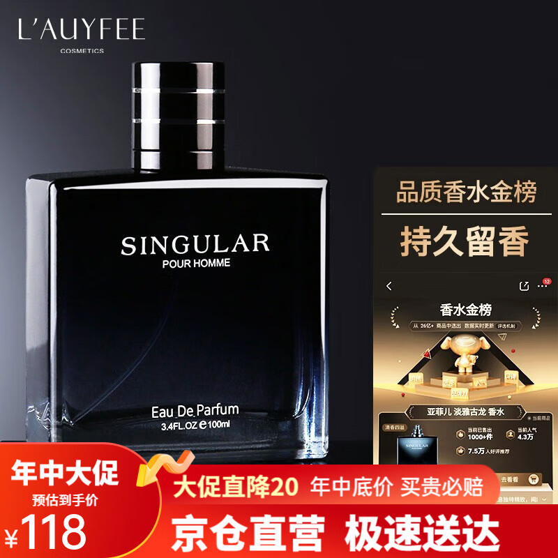 ¥108 亞菲兒(Lauyfee)非凡男士香水持久香水男古龙香水木质香水礼盒淡香送男友生日礼物 118