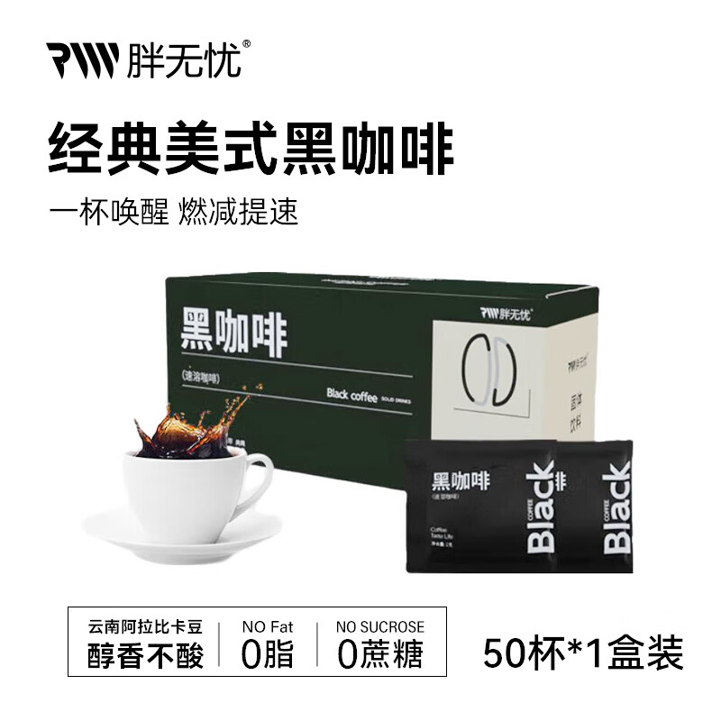 ¥9.9 【到手9.9!旗舰店】胖无忧 黑咖啡 特浓冰美式 2g*50袋 14.9
