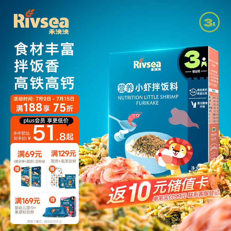 ¥49 禾泱泱营养小虾拌饭料 儿童零食可拌面条 高钙高蛋白 无添加白砂糖70g 69