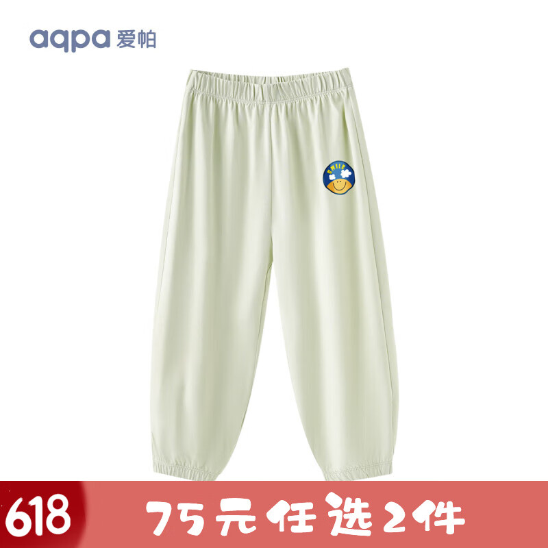 ¥49 aqpa【UPF50+】儿童裤子防蚊裤夏季薄款运动裤防晒婴幼儿速干长裤 抹茶绿【开心一笑】 100cm】 65