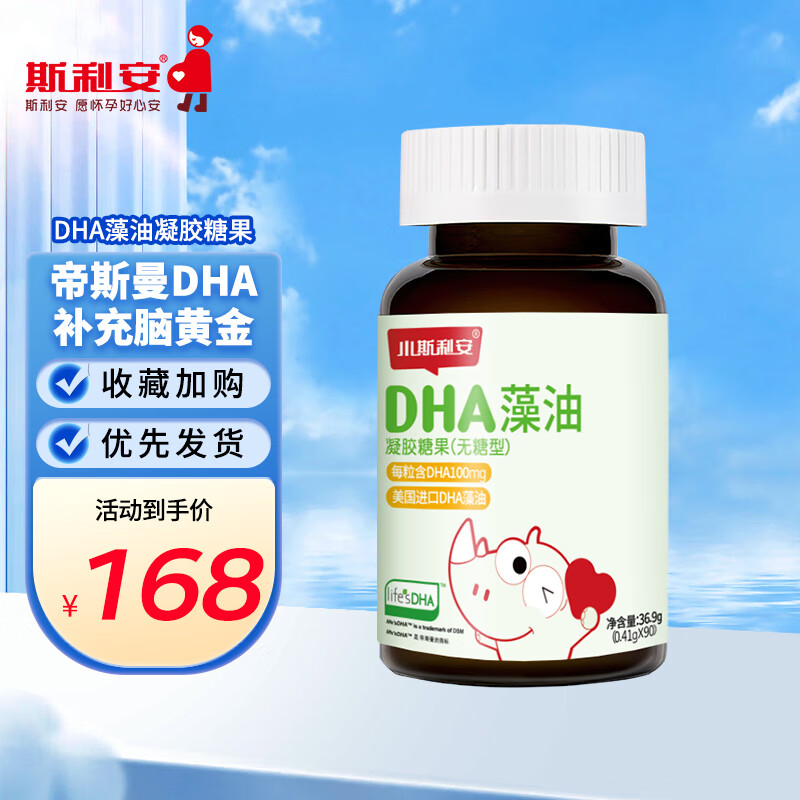 ¥167 小斯利安宝宝DHA复合藻油糖果S油(无糖型)90粒 进口帝斯曼藻油纯度高于40% 小斯利安DHA藻油90粒 300