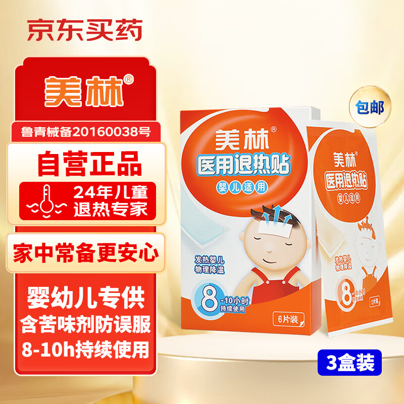 ¥99.68 美林医用退热贴6贴*3盒婴儿退热贴退烧贴儿童冷敷贴清凉贴散热贴物理降温冰宝贴宝宝用品家庭常备3个月以上 113.68