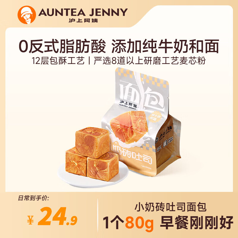 ¥15.9 沪上阿姨面包小奶砖吐司面包早餐点心便携装牛奶香面包代餐 小奶砖面包(80g*6个) 480g 24.9