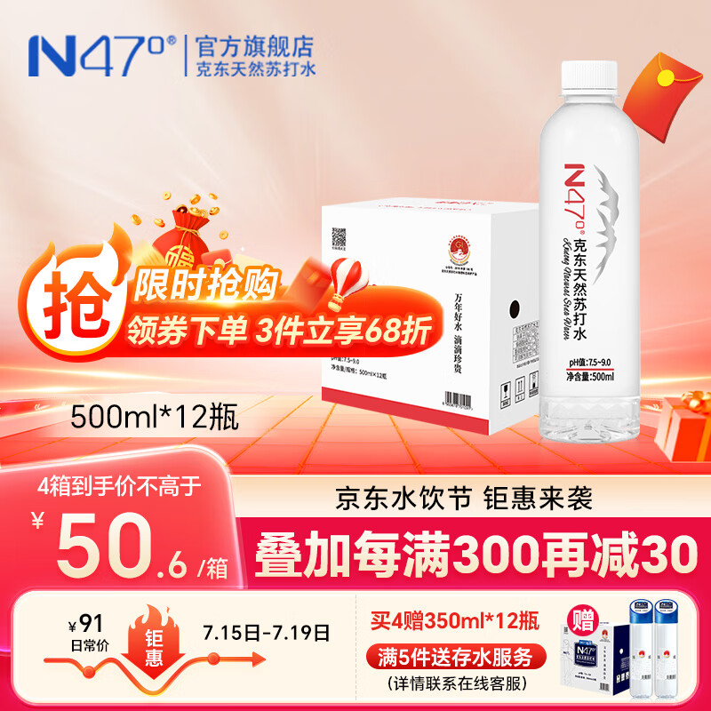 ¥81 N47° 克东天然苏打水地理标志矿泉水无气弱碱饮用水500ml*12瓶整箱 91