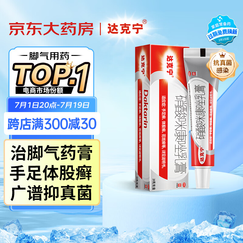 ¥13.7 达克宁软膏硝酸咪康唑乳膏20g治脚气药止痒脱皮烂脚丫真菌感染止痒脚气膏止痒脱皮烂脚丫脚气根i治治脚气的特i效药咪康唑散 18.7