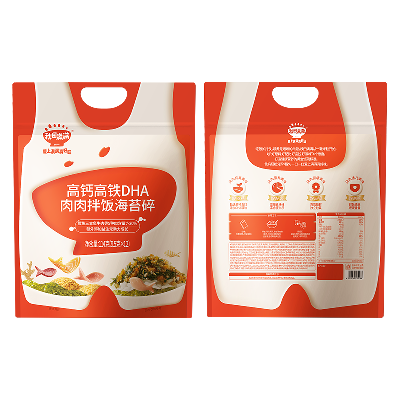 ¥30.93 秋田满满海苔碎拌饭碎肉松紫菜无添加补即食钙铁享36个月婴儿童宝宝零食铺 高钙铁海苔碎114g拍2送38g海苔碎 33.93