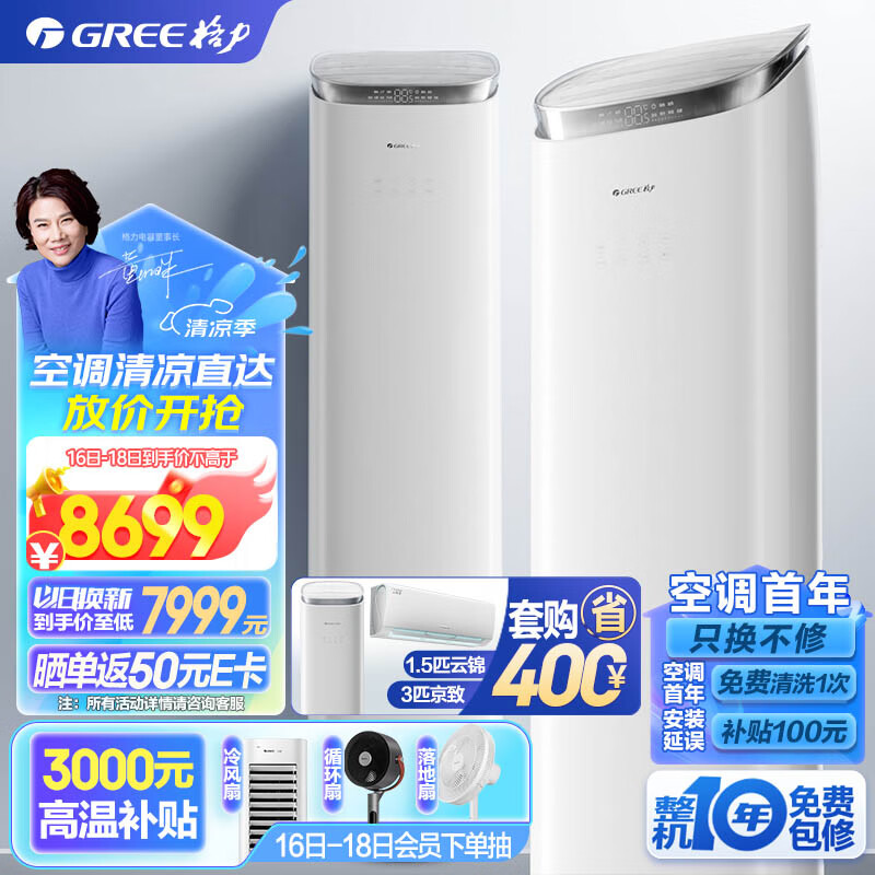 ¥8699 格力(GREE)3匹 京致 冷暖分送 衡温空间 自清洁 智能 客厅空调立式空调柜机KFR-72LW/NhAj1BGj 8699