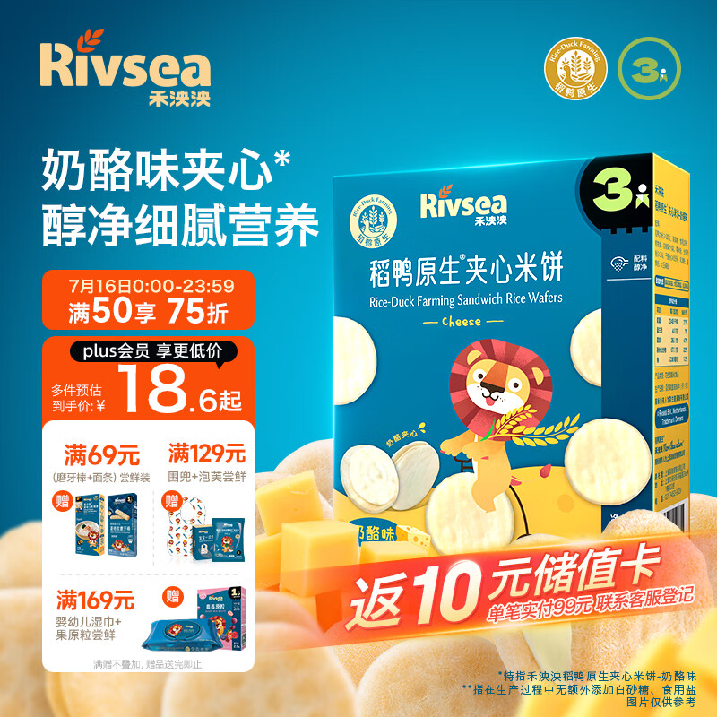¥23.8 禾泱泱米饼 儿童零食 磨牙早餐饼干 稻鸭夹心米饼奶酪味32g 24.8