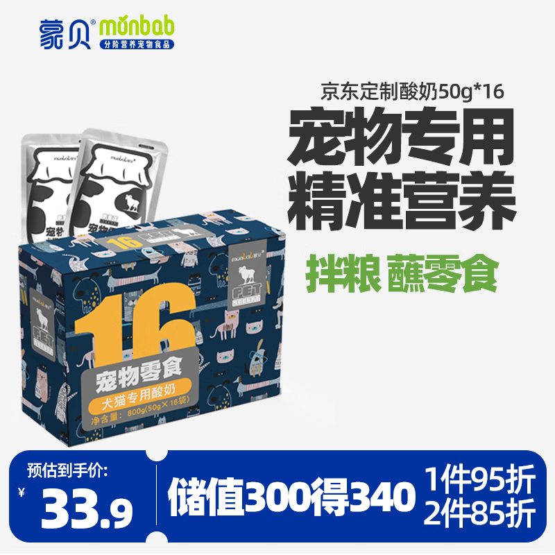 ¥31.9 蒙贝宠物酸奶 狗狗零食 羊奶0添加猫咪狗狗补充营养拌粮 猫奶50g×16包 39.9