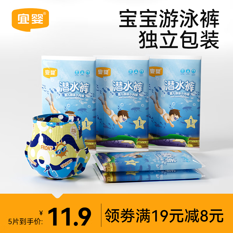 ¥9.9 宜婴一次性游泳裤 男女宝宝通用 独立包装 M号5片【6-11kg】 19.9