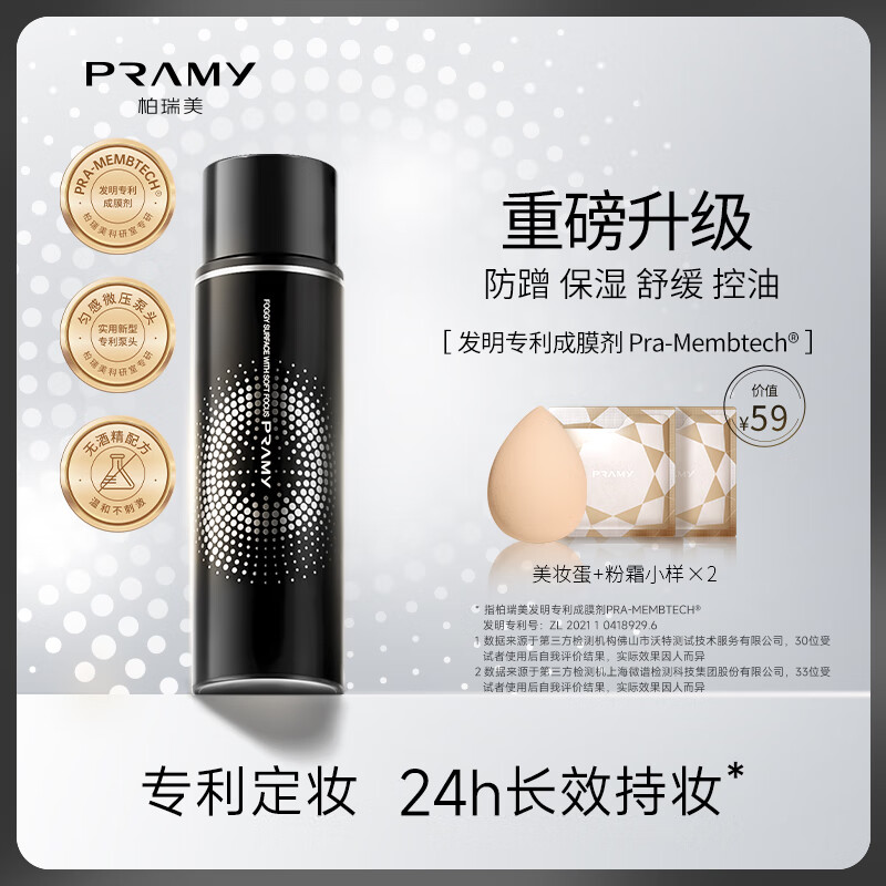 ¥39.9 柏瑞美(PRAMY)定妆喷雾快速成膜持久定妆防水防蹭不易脱妆控油保湿补水C 柔焦雾面黑瓶100ml 59.9