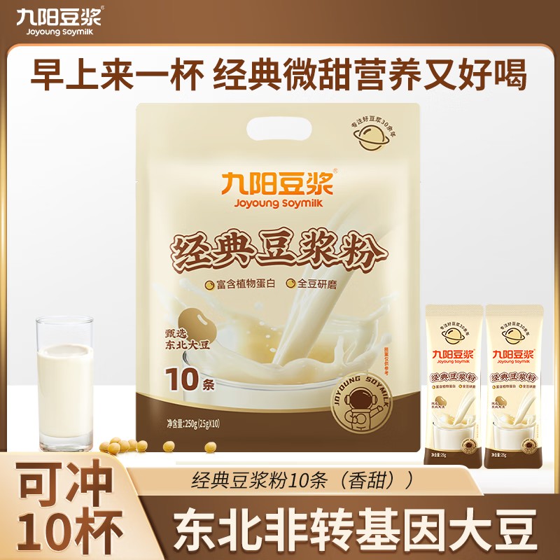 ¥12.9 九阳豆浆经典豆浆粉香甜豆浆高蛋白原味营养早餐 经典豆浆粉袋装(25g*10条) 19.9