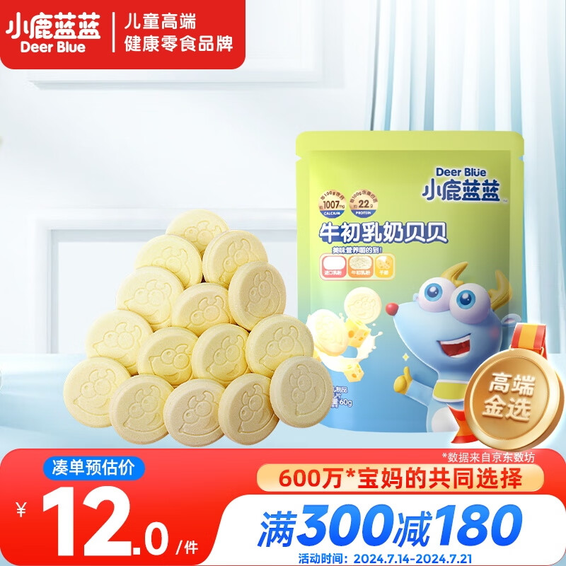 ¥14.95 小鹿蓝蓝_牛初乳奶贝贝 奶片儿童零食宝宝奶片含牛初乳酥脆易咀嚼 60g 29.9