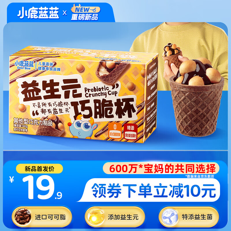 ¥19.9 小鹿蓝蓝儿童巧脆杯140g儿童夹心饼干巧克力零食脆脆杯纯可可脂 29.9