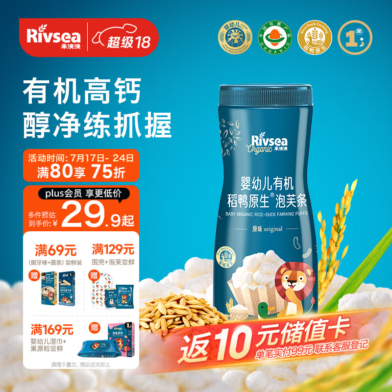 ¥38.8 禾泱泱婴幼儿有机泡芙条 宝宝零食6个月以上 稻鸭原生泡芙条原味32g 39.8