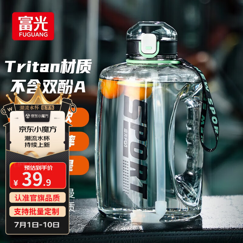 ¥44.9 富光运动水壶塑料水杯大容量男女网红大肚杯健身顿顿水桶太空吸管杯子 深灰 1600ml 49.9