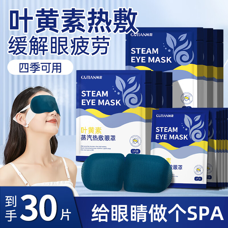 ¥9.9 顾甜叶黄素热敷蒸汽眼罩加热遮光睡眠眼罩自发热护眼贴男女士通用 30片-缓解眼疲劳干涩视力模糊 26.9