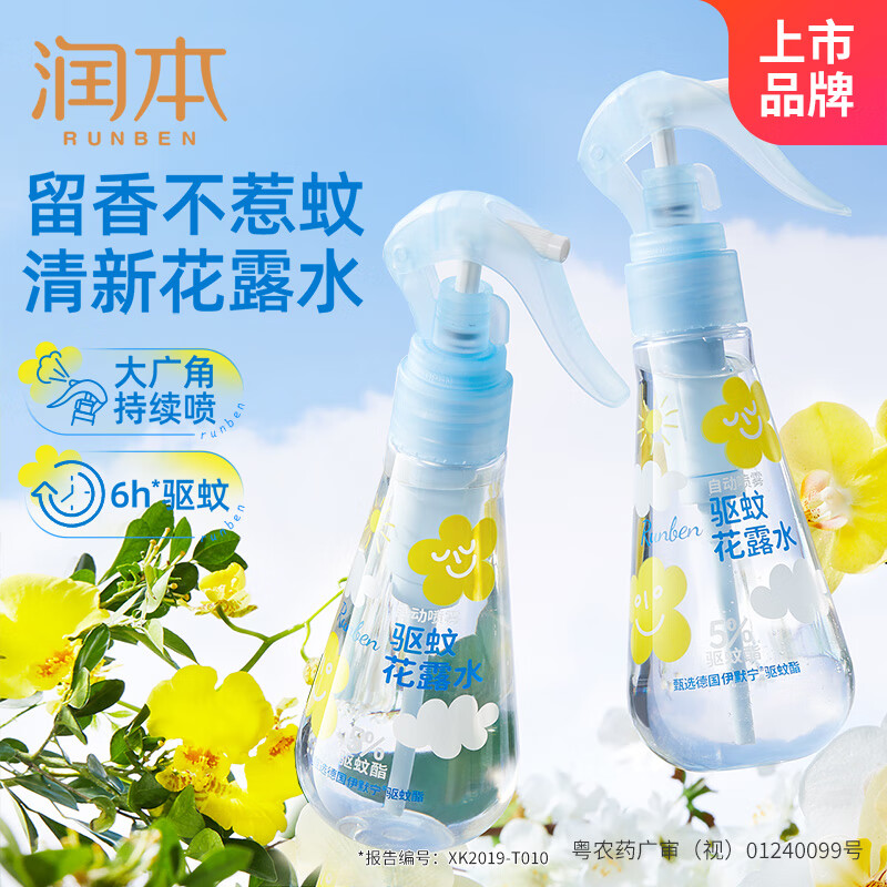 ¥22.9 润本(RUNBEN)驱蚊液花露水185ml户外防蚊喷雾儿童宝宝舒缓蚊虫叮咬-5%驱蚊酯 29.9