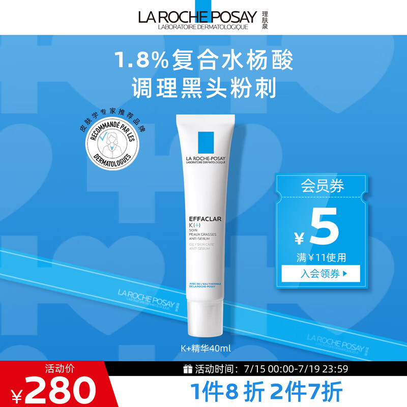 ¥275 理肤泉K乳40ml 水杨酸控油清洁去黑头粉刺闭口收缩毛孔祛痘护肤品男女 280