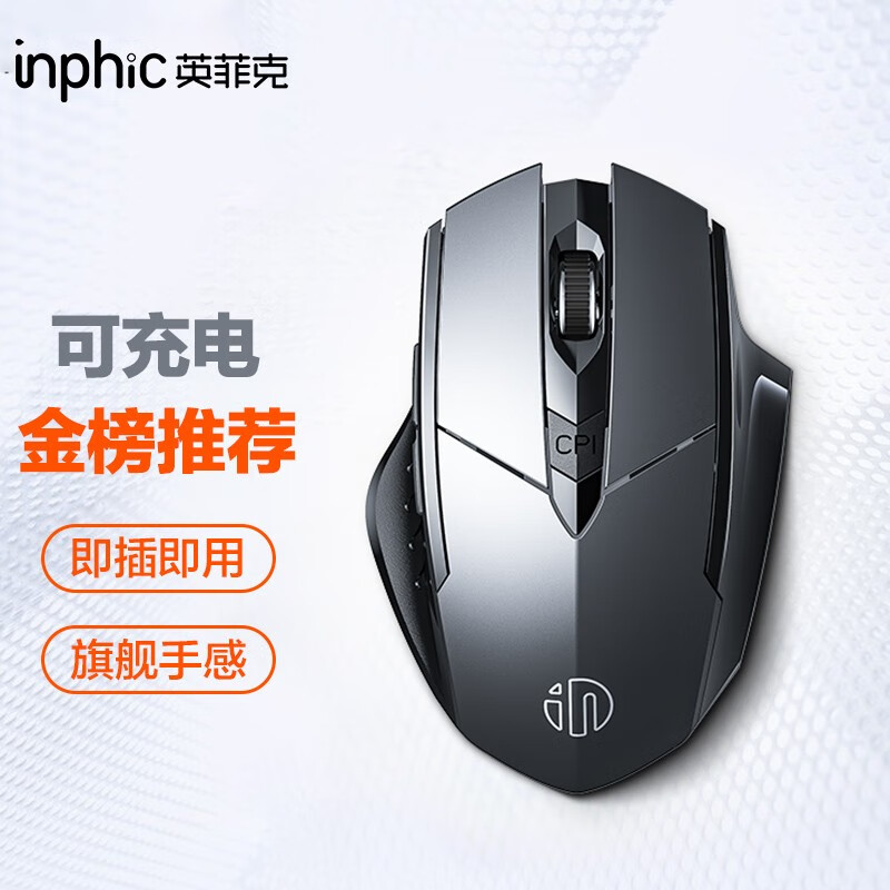 ¥19.9 英菲克(INPHIC)PM6无线蓝牙鼠标可充电静音办公人体工学三模适用于台式笔记本电脑无限2.4G 无线2.4G充电版 灰 27.9